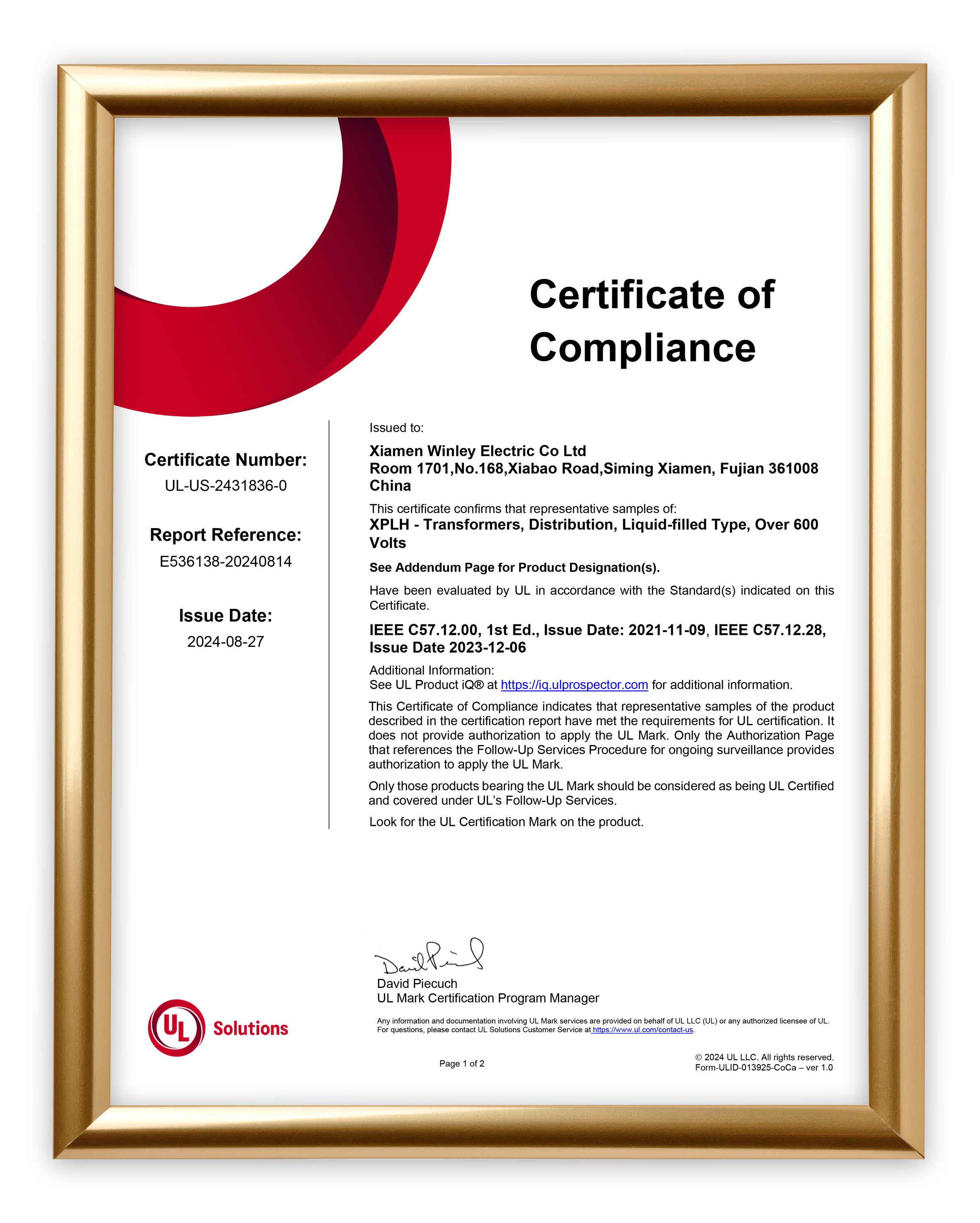| Standard | ~ | ASNI/IEEE C57.12.00 |